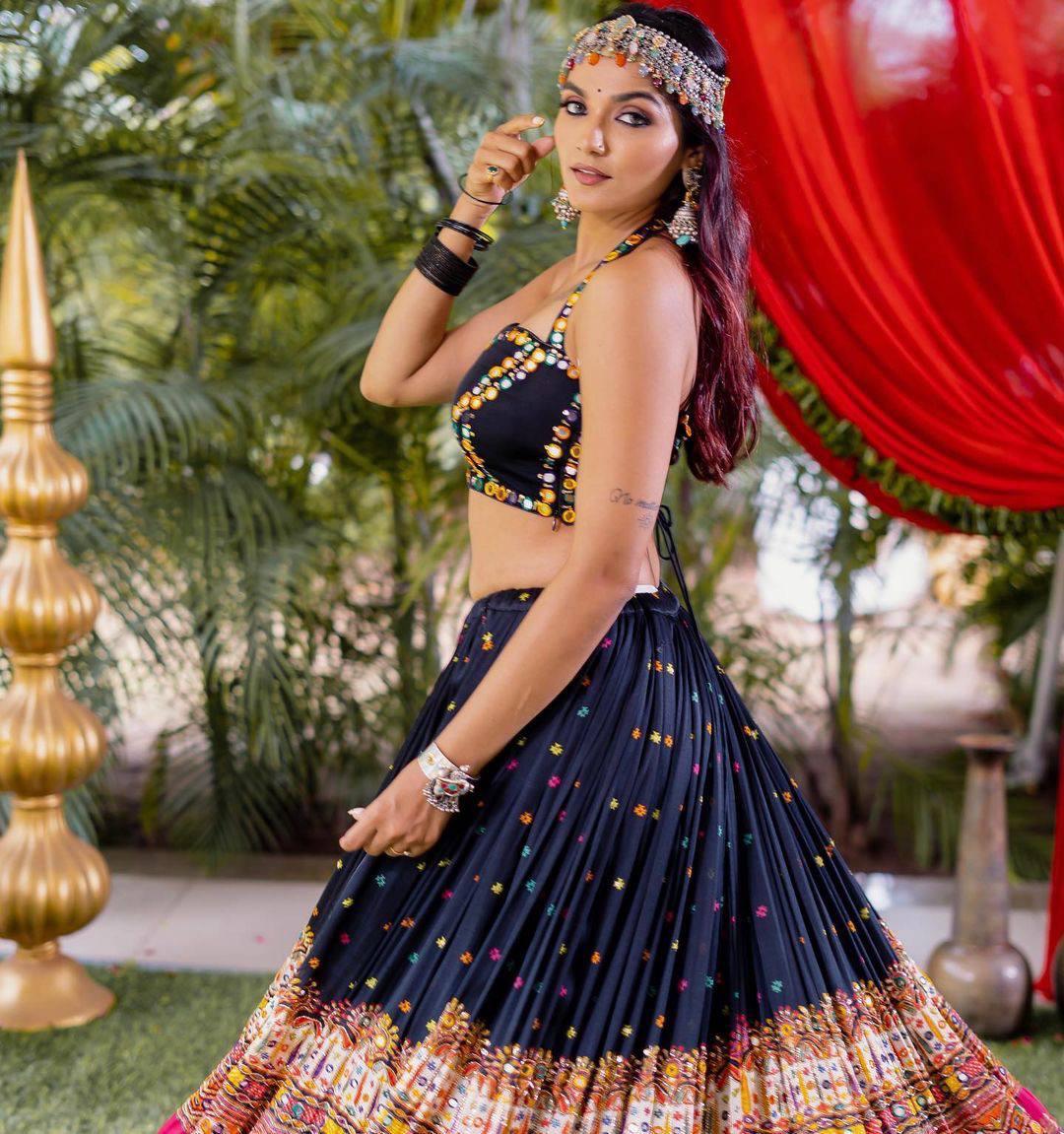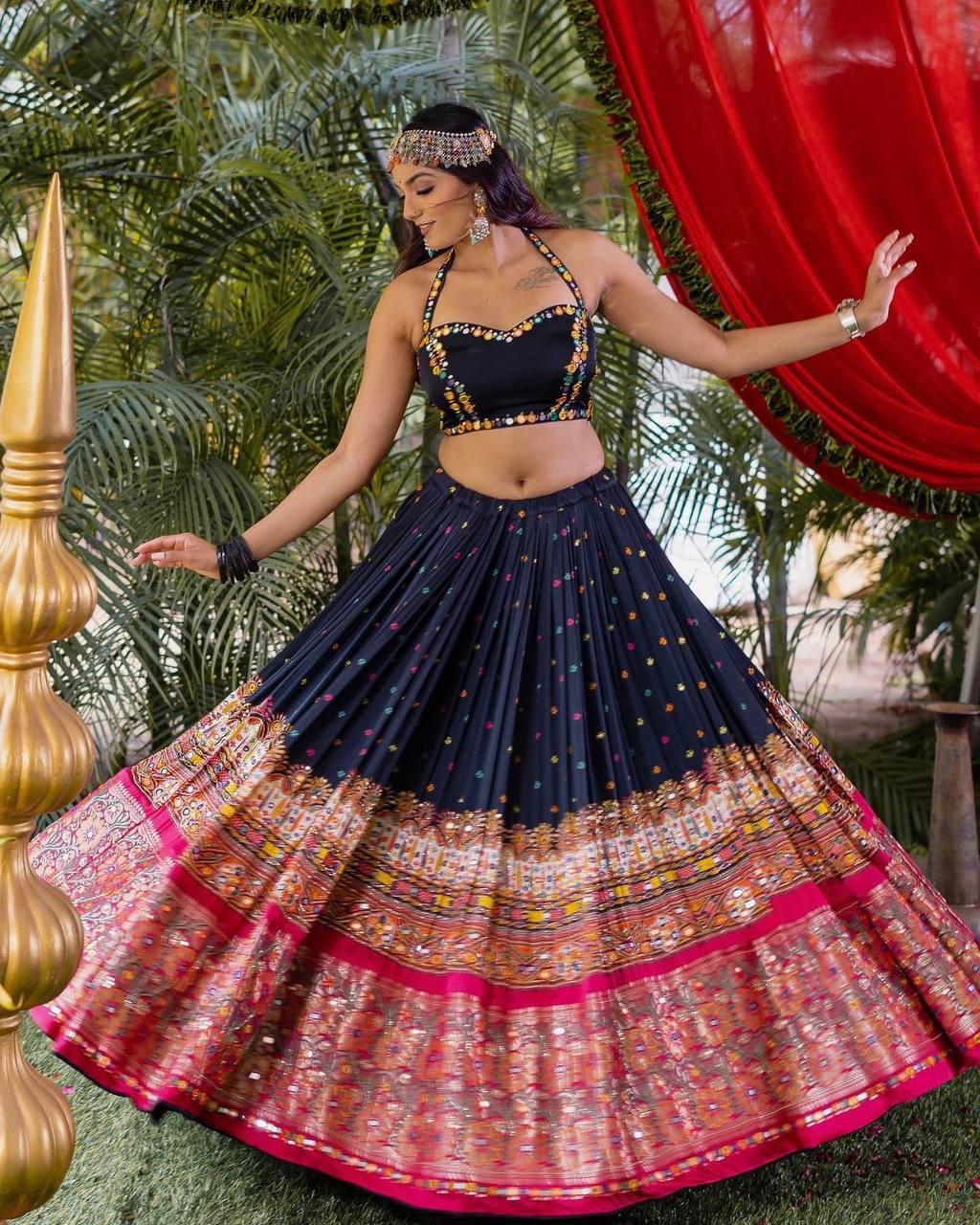 Lehenga : Heavy Butter Silk With Real Mirror Work 4 Meter Flair (fully Stitched)
