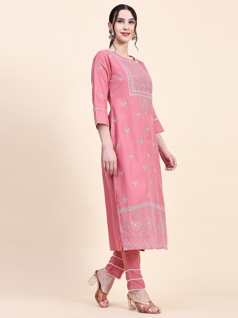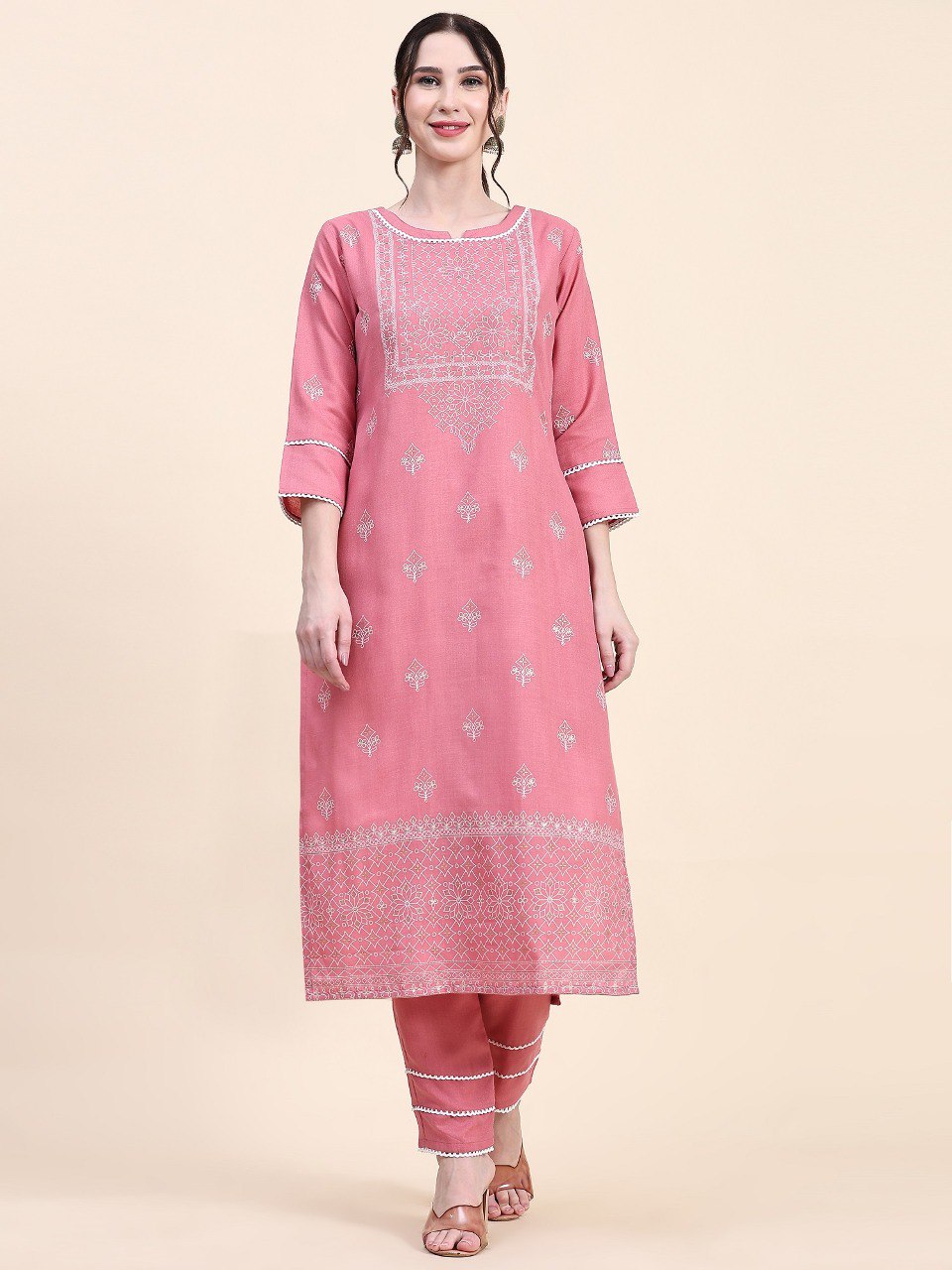 This beautiful Designer Kurta Bottom Set in pink is made from heavy Jaipuri cotton fabric, featuring vibrant printed patterns. Offering both style and comfort, this set is perfect for casual or semi-formal occasions.