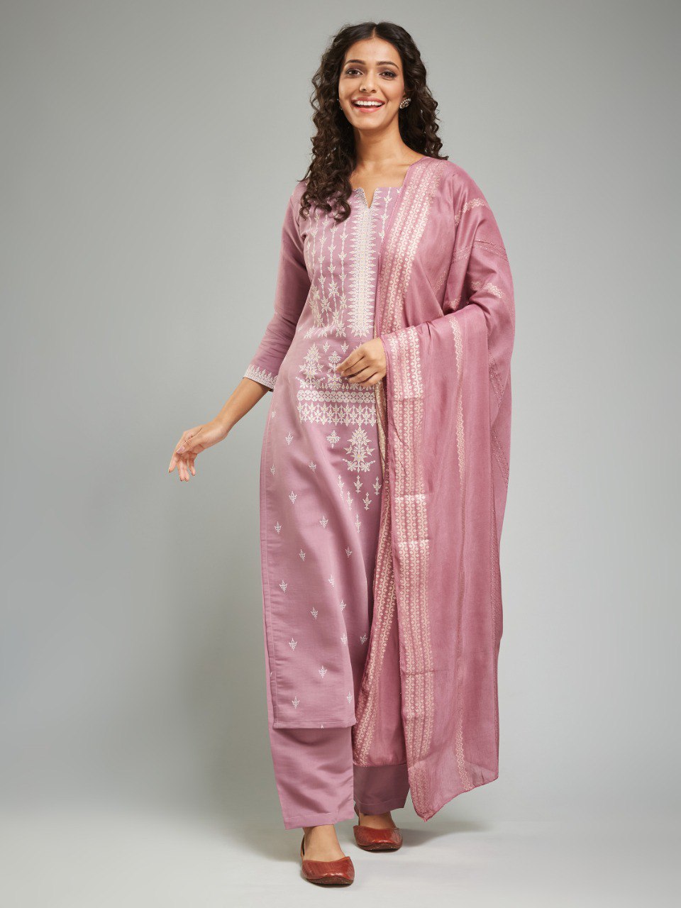 This elegant Designer Kurta Suit Set is made from heavy Viscose Chanderi fabric, featuring intricate embellishments and beautiful premium prints. The set includes a Kurta, Bottom, and Dupatta, offering a blend of sophistication and comfort, perfect for any occasion.