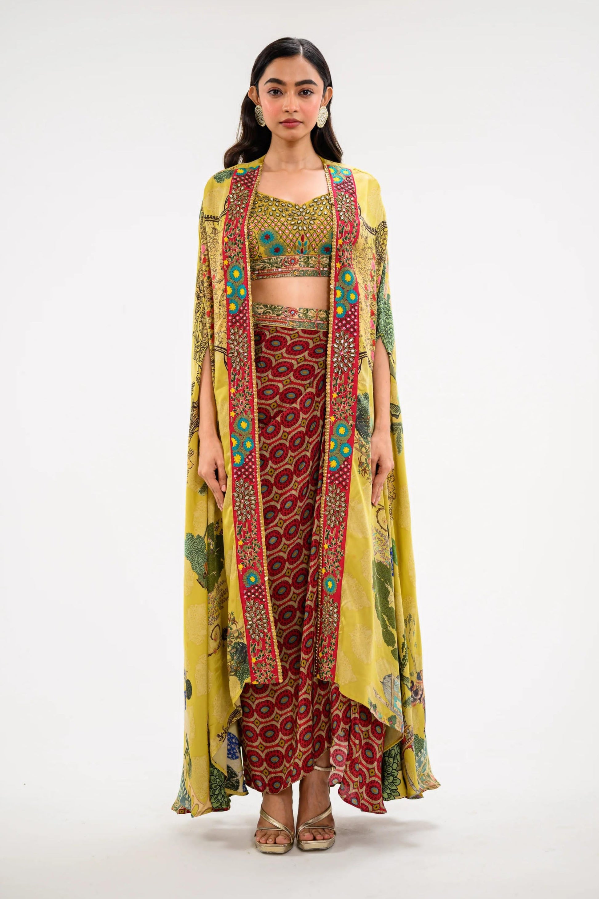 FABRIC : Malai Satin with Printed and Mirror Work.