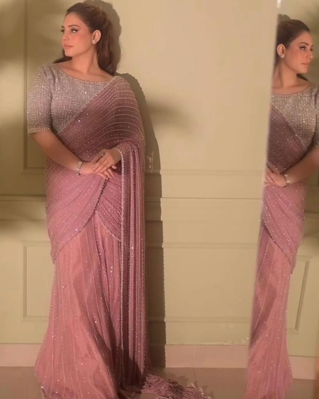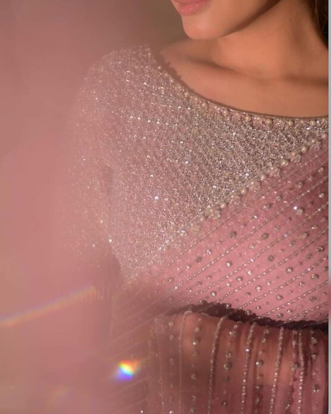 WORK : Embroidery, Diamond & sequins work throughout the saree.