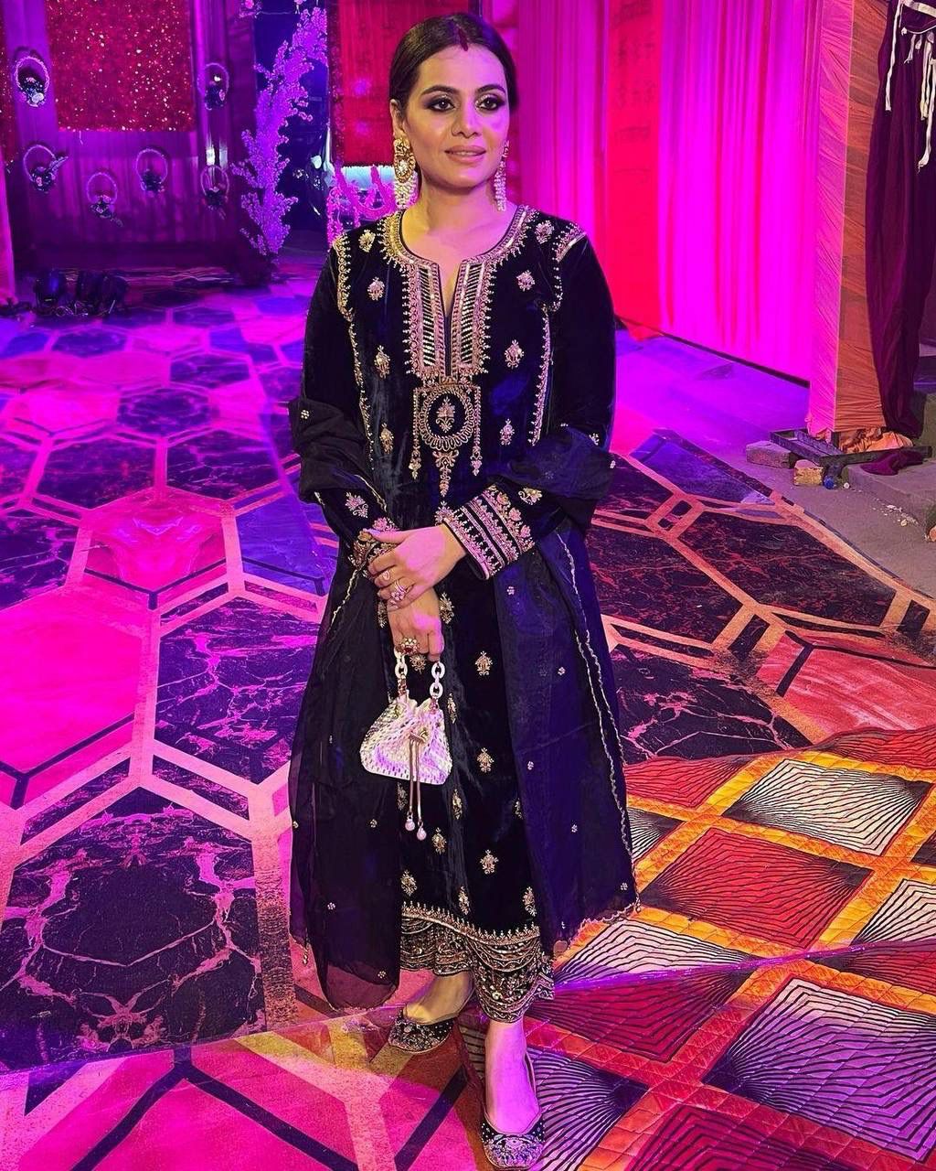 PALAZZO : Heavy velvet with zari embroidery work (fully stitched, up to XXL size)