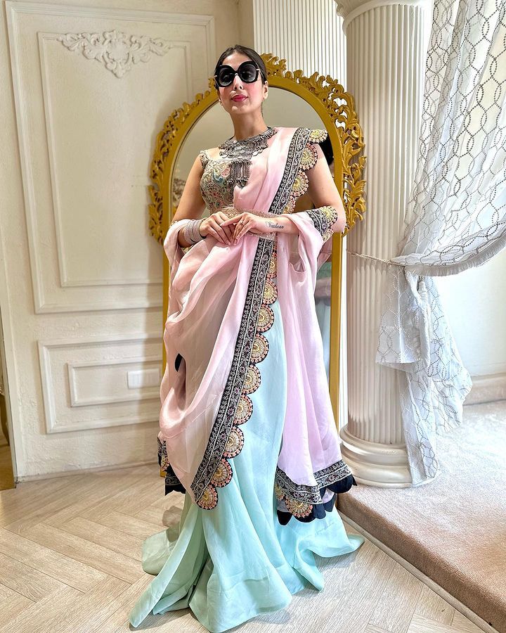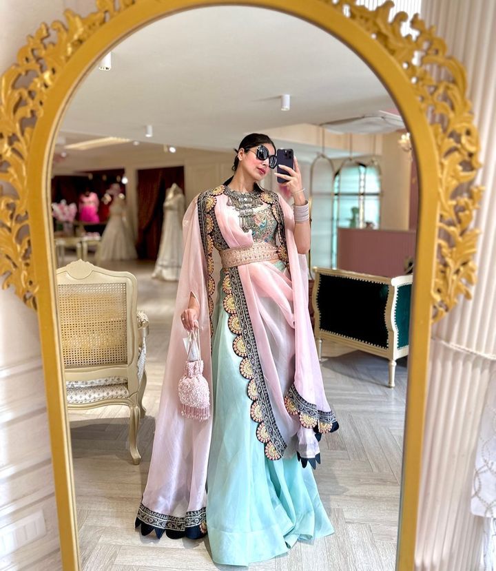 Introducing the Virangana Vogue Dual-tone Dress – a stunning fusion of tradition and modernity. This exquisite dress features a mesmerizing dual-tone design that beautifully blends rich, vibrant hues. Crafted with luxurious fabric, it boasts intricate embroidery and delicate embellishments, making it perfect for any grand occasion. Step into elegance and make a bold statement with the Virangana Vogue Dual-tone Dress, where timeless charm meets contemporary style.