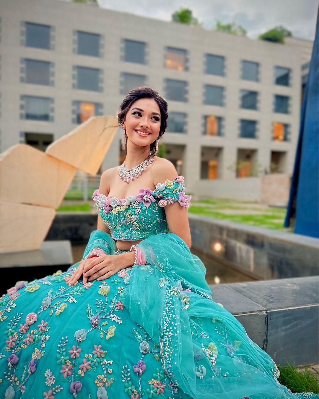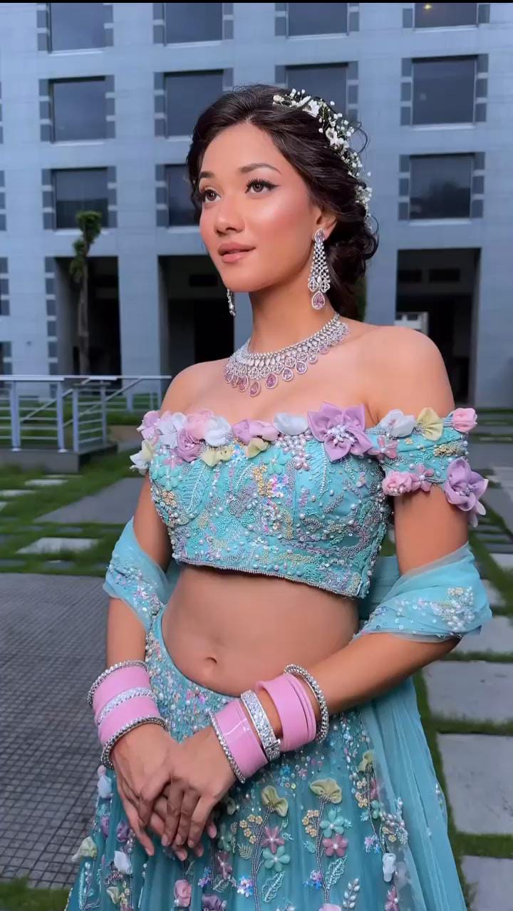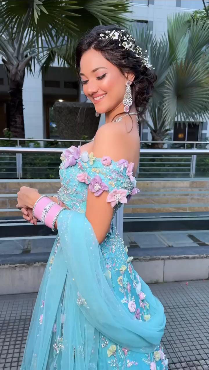 LEHENGA : Georgette Fabric, Designer Flower Work & Embroidery Sequins Work with Cancan & Canvas Patta.