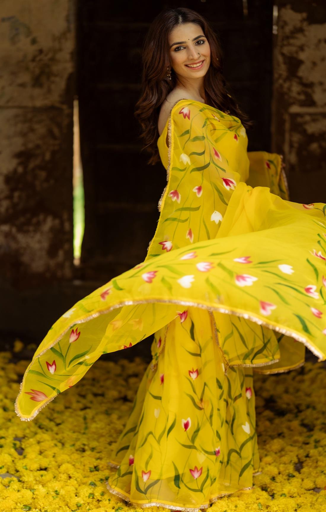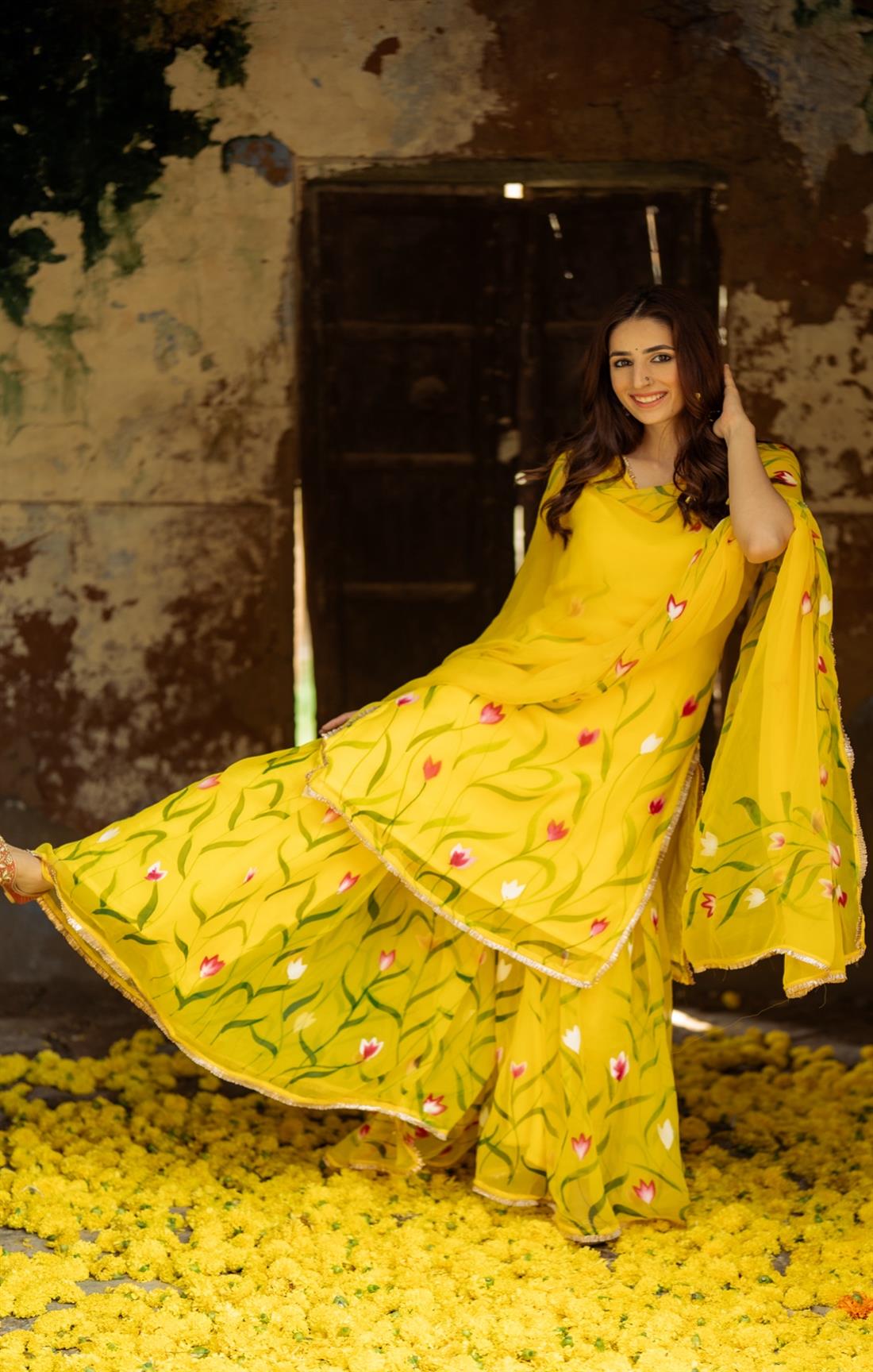Yellow Color Floral Digital Printed Organza Sharara Suit Set
