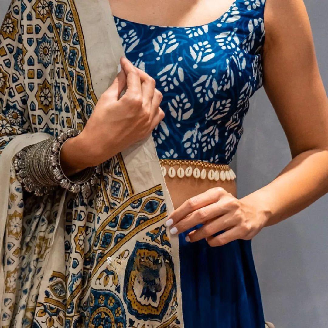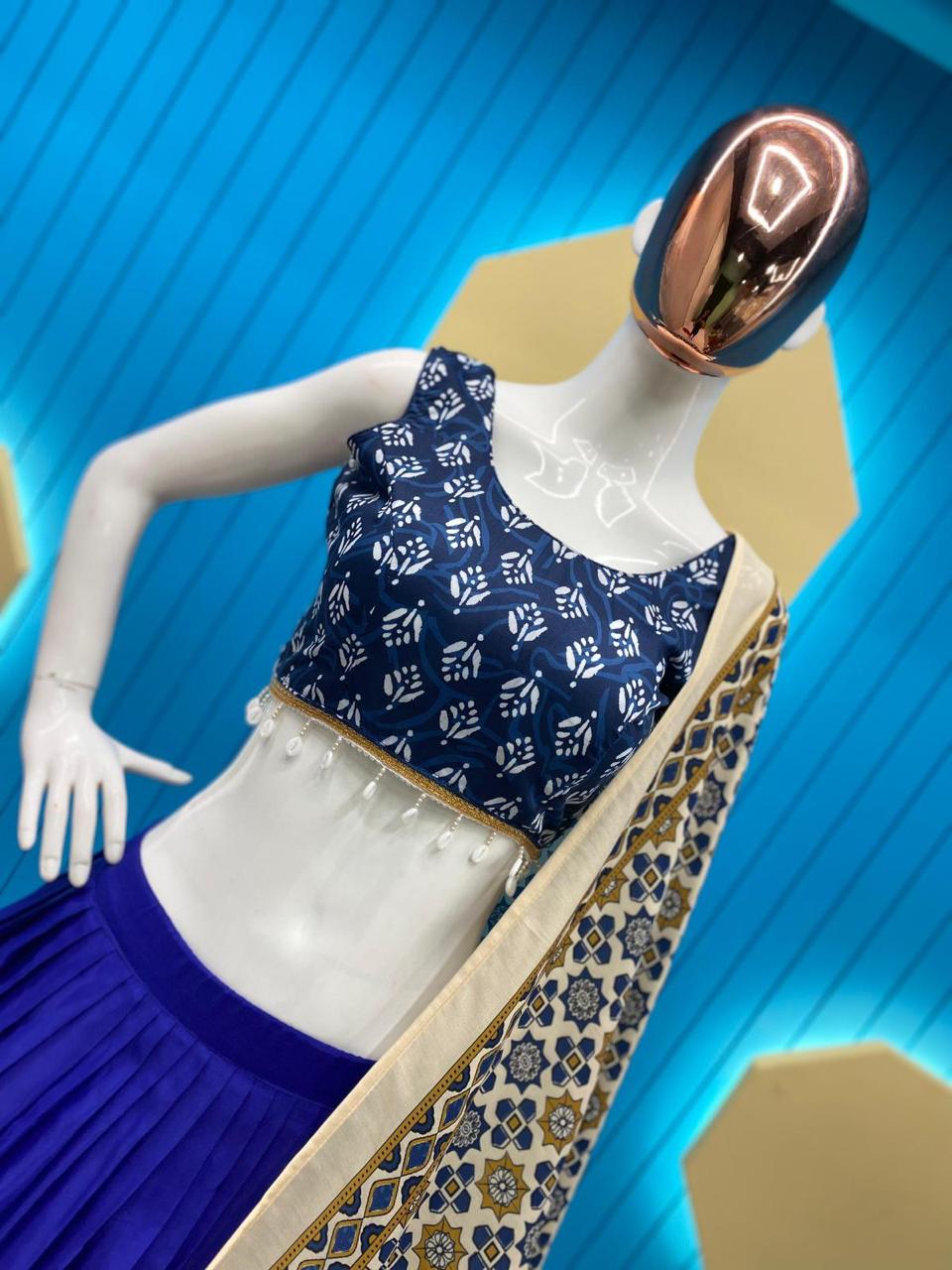 Choli : Maslin With Print Work and Kodi Lace Work (1 Meter Fabric)